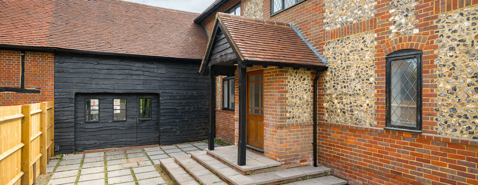 The main farmhouse, boasts charming brick and flint elevations. The property offers two spacious reception rooms, and a large family kitchen/breakfast room at its heart. Two staircases lead to the first floor, where five bedrooms are located. A further staircase ascends to the top floor, which includes two additional bedrooms, a stunning freestanding bathroom with views of adjoining fields and a laundry room. The upper floors feature a total of four additional bath/shower rooms, three of which are en-suite.