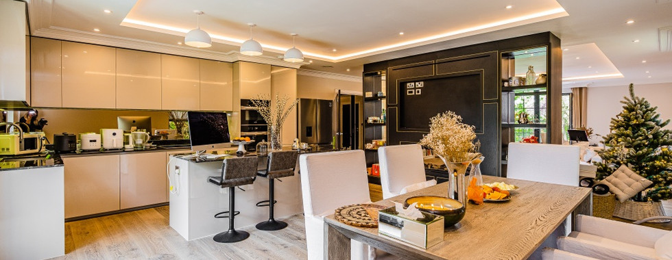 Spacious open-plan kitchen, dining, and reception area