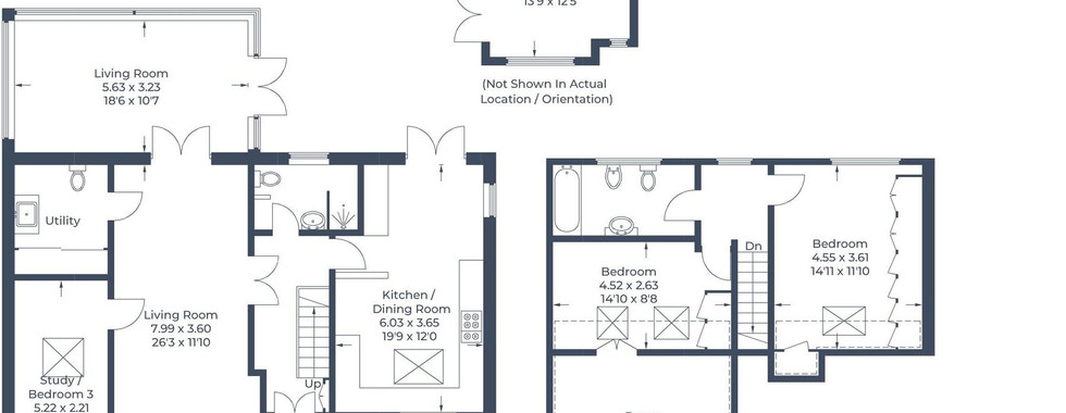 The ground floor includes a welcoming reception hall, a versatile downstairs bedroom/study, a utility room with WC, and two generous reception rooms. The heart of the home is a contemporary kitchen/dining area that flows seamlessly into an additional living/dining space, creating a superb setting for everyday living and entertaining.