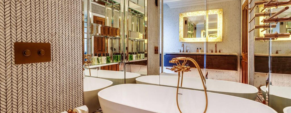 The approach sets the tone, with a traditional Victorian tiled footpath leading to an impeccably finished façade. Inside, rich oak herringbone flooring with underfloor heating flows throughout the ground floor, complemented by deep Victorian-style panelled walls, ornate plaster coving, and Lutron-controlled lighting.