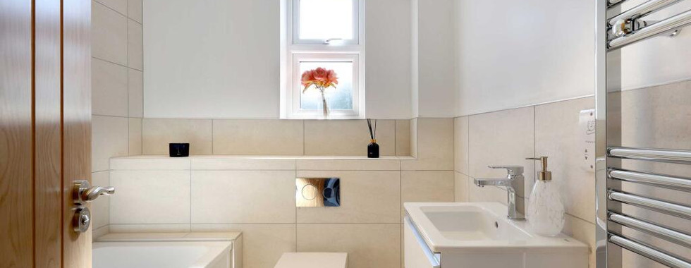 Upstairs, each bedroom benefits from generous proportions and bespoke fitted sliding wardrobes, offering ample storage. Bathrooms are finished to a premium standard, incorporating Roca and Merlyn accessories for a polished, luxury aesthetic.