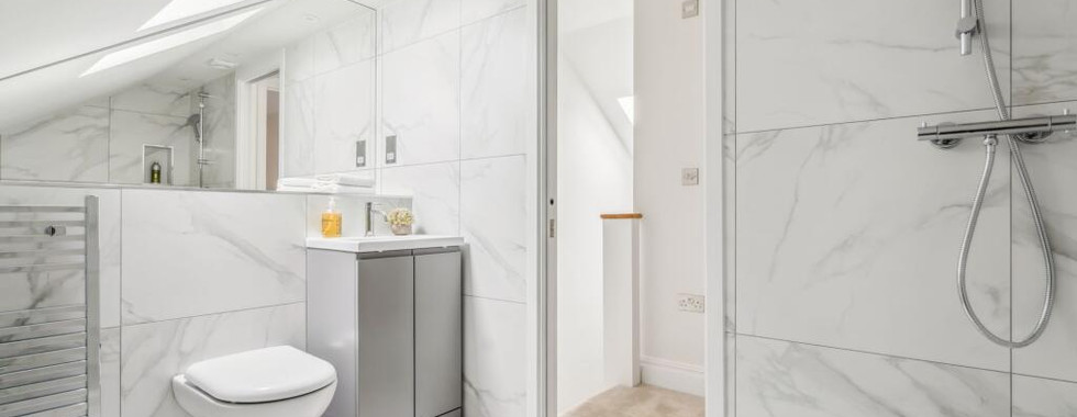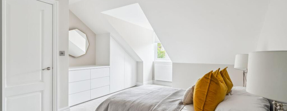 The second floor is dedicated to the principal suite – a private retreat with built-in wardrobes, generous under-eaves storage, and its own shower room, giving this level the feel of a boutique hotel.