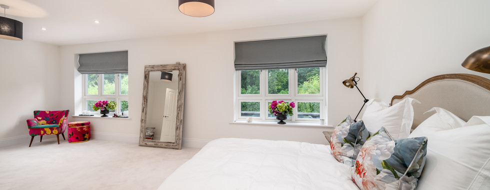 The first floor staircase leads to a generous landing, which provides access to the principal bedroom. This luxurious suite includes a walk-in wardrobe and an en-suite bathroom complete with both a bath and shower. Also on the first floor are the second bedroom with an en-suite shower room, two additional bedrooms, and a family bathroom.