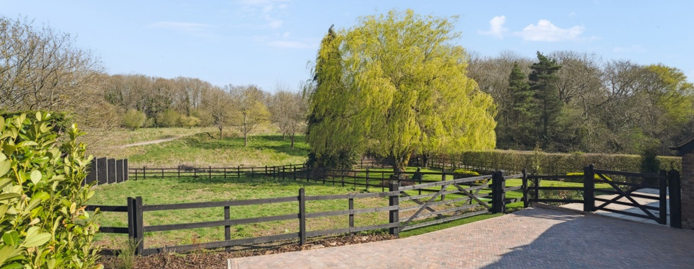 The property is set within beautifully landscaped gardens, both front and rear, with breathtaking views over the countryside. There are three private parking spaces, an attractive herringbone-paved driveway, plus additional visitors' parking. The front garden is attractively walled and laid to lawn, with pretty stocked borders. The rear garden offers an excellent terrace for entertaining, leading to a lawn with stocked beds, and a gated paddock for the exclusive use of The Farmhouse. In total, the grounds extend to about a third of an acre, with views over Green Belt farmland on two sides.