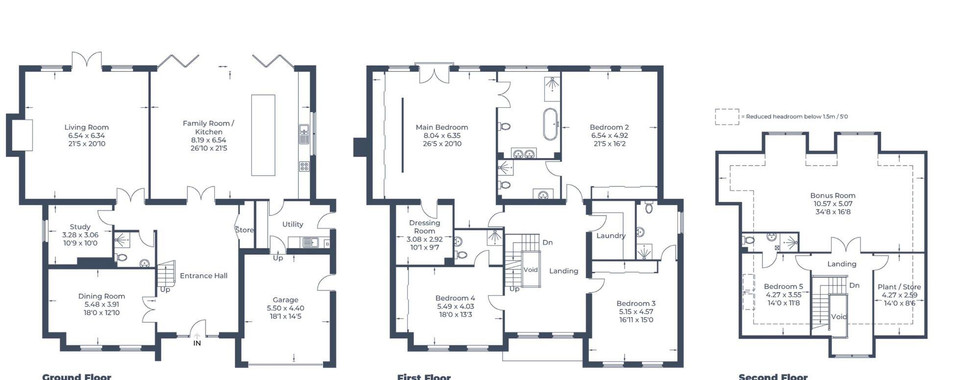 Five generous ensuite bedrooms plus versatile bonus/media room