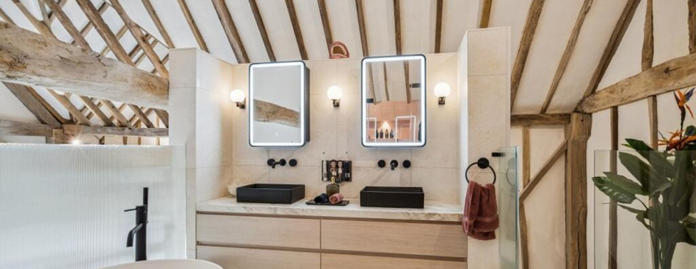 The barn has undergone a meticulous renovation and is now presented to an exceptional specification, seamlessly blending period character with contemporary luxury. Dramatic vaulted proportions, carefully designed living spaces and expansive glazing allow the interiors to be bathed in natural light while framing uninterrupted views across surrounding farmland.