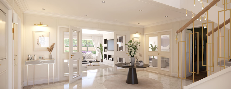Camp Road is widely recognized as one of Buckinghamshire’s premier addresses, known for its large, detached homes on expansive plots. The plans for Knowle Croft align with the architectural tone of neighbouring properties and benefit from a particularly wide road frontage, enhancing curb appeal and overall presence. The plot itself, measuring approximately 0.4 acres, includes permission for gated access and is framed by well-established gardens, creating a private and tranquil setting. The location is steeped in history, with the nearby ancient Anglo-Saxon camp just a short walk away. Bulstrode Park, with over 200 acres of open parkland and grazing areas, lies directly across the road, adding to the idyllic rural character.