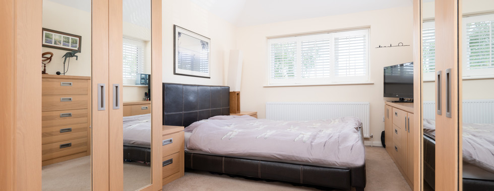 The first floor boasts four double bedrooms, with the principal bedroom enjoying an en suite shower room and vaulted ceiling. The remaining three bedrooms all feature fitted wardrobes and share a well-appointed family bathroom.